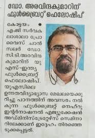 Prof. C. T. Aravindakumar, Pro. Vice Chancellor of Mahatma Gandhi University awarded the prestigious Indo-US Fulbright fellowship in 2023